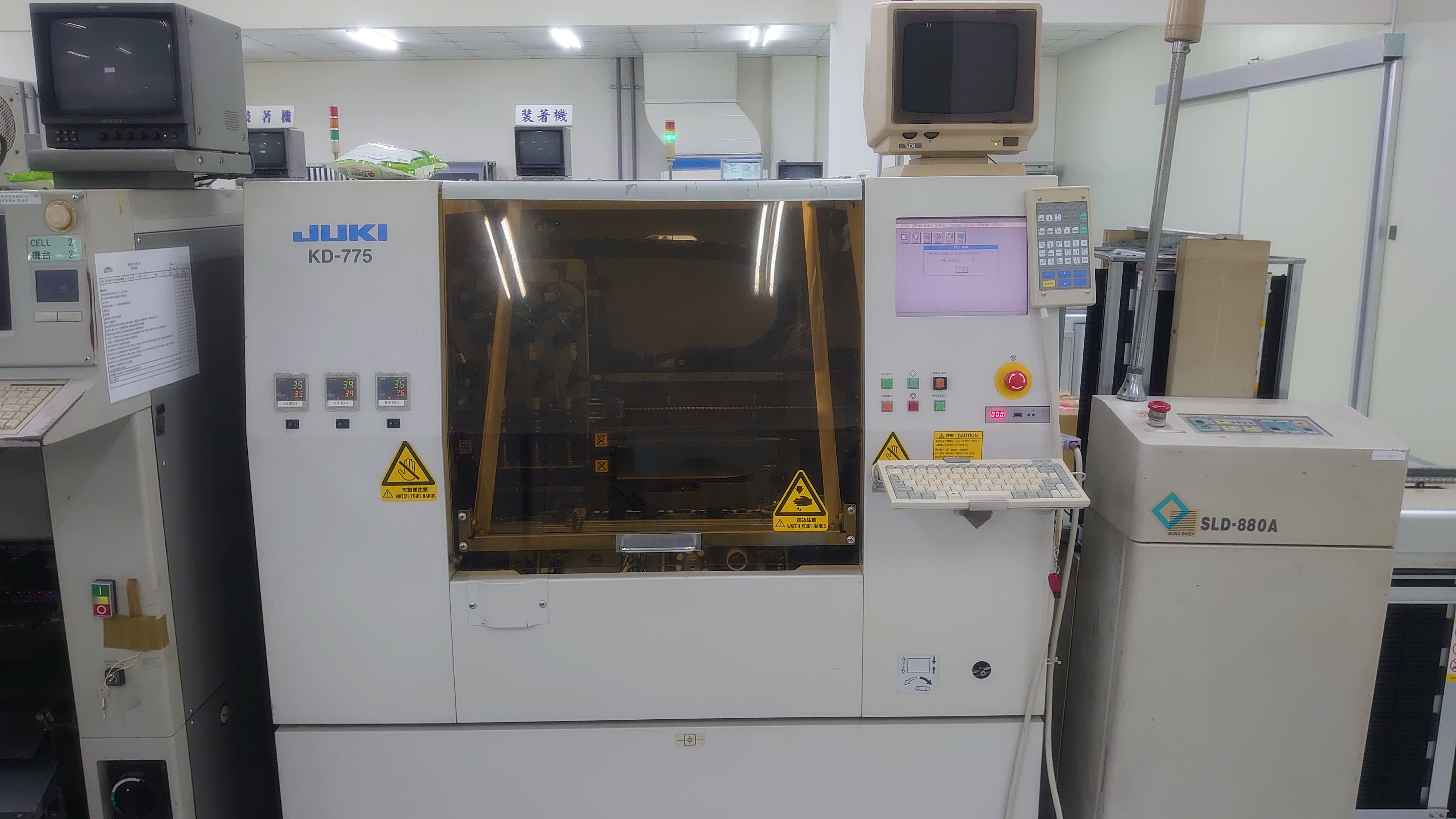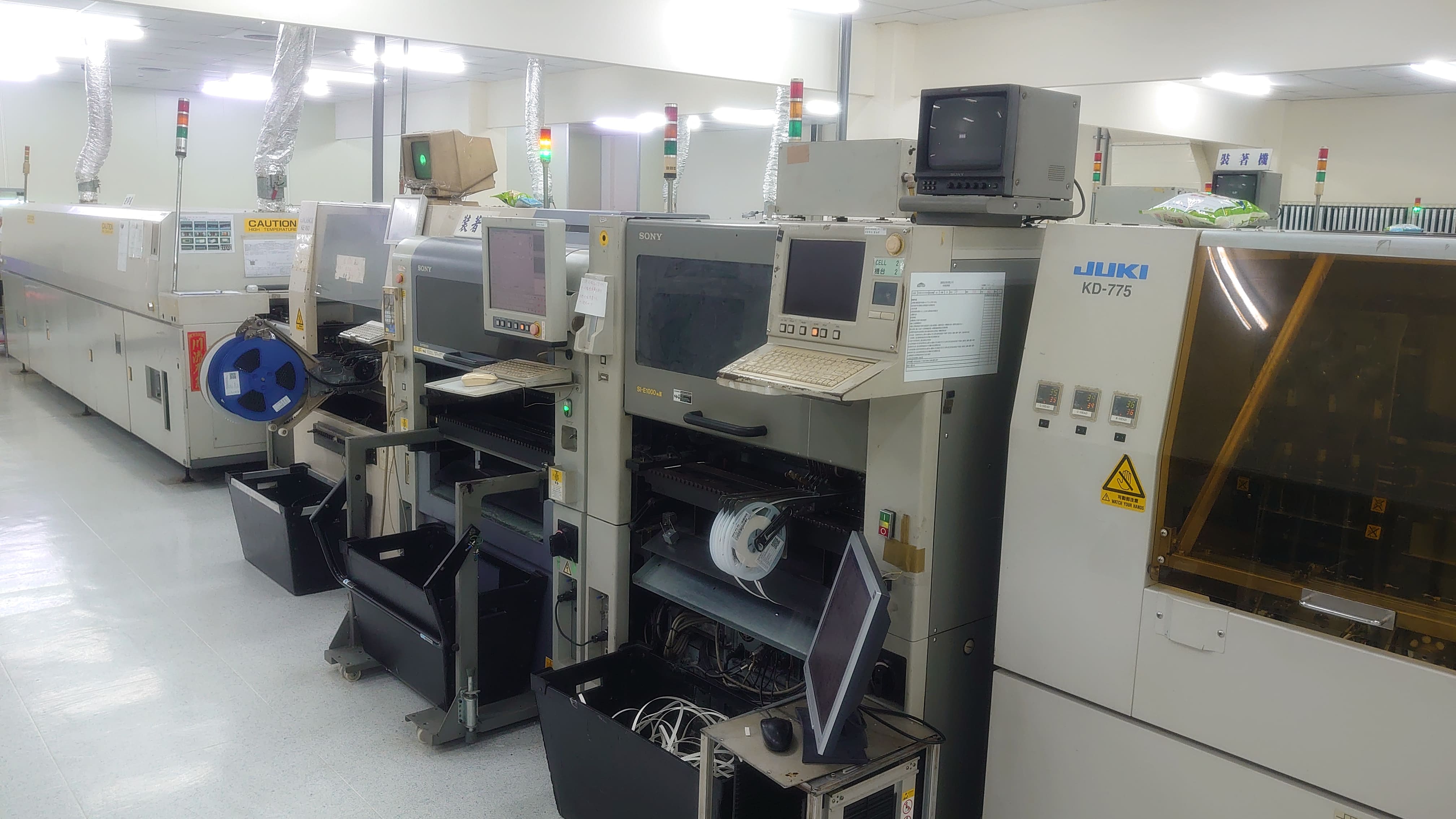 由視覺印鍚機,點膠機,裝著機*2,無鉛迴焊爐搭配成之 SMT裝著線